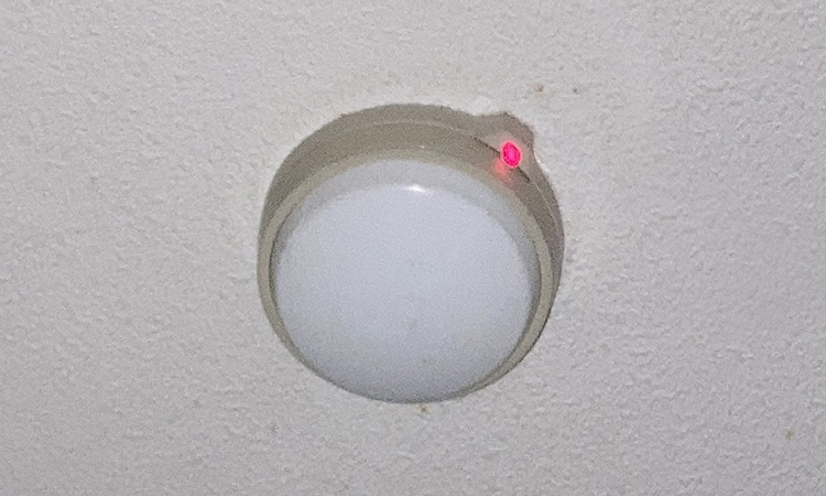 火災感知器や煙探知器は、各部屋・押し入れ内など複数個所に設置してあります。もしも火の気が無いのに、火災感知器が反応して赤いランプが点いていた場合。